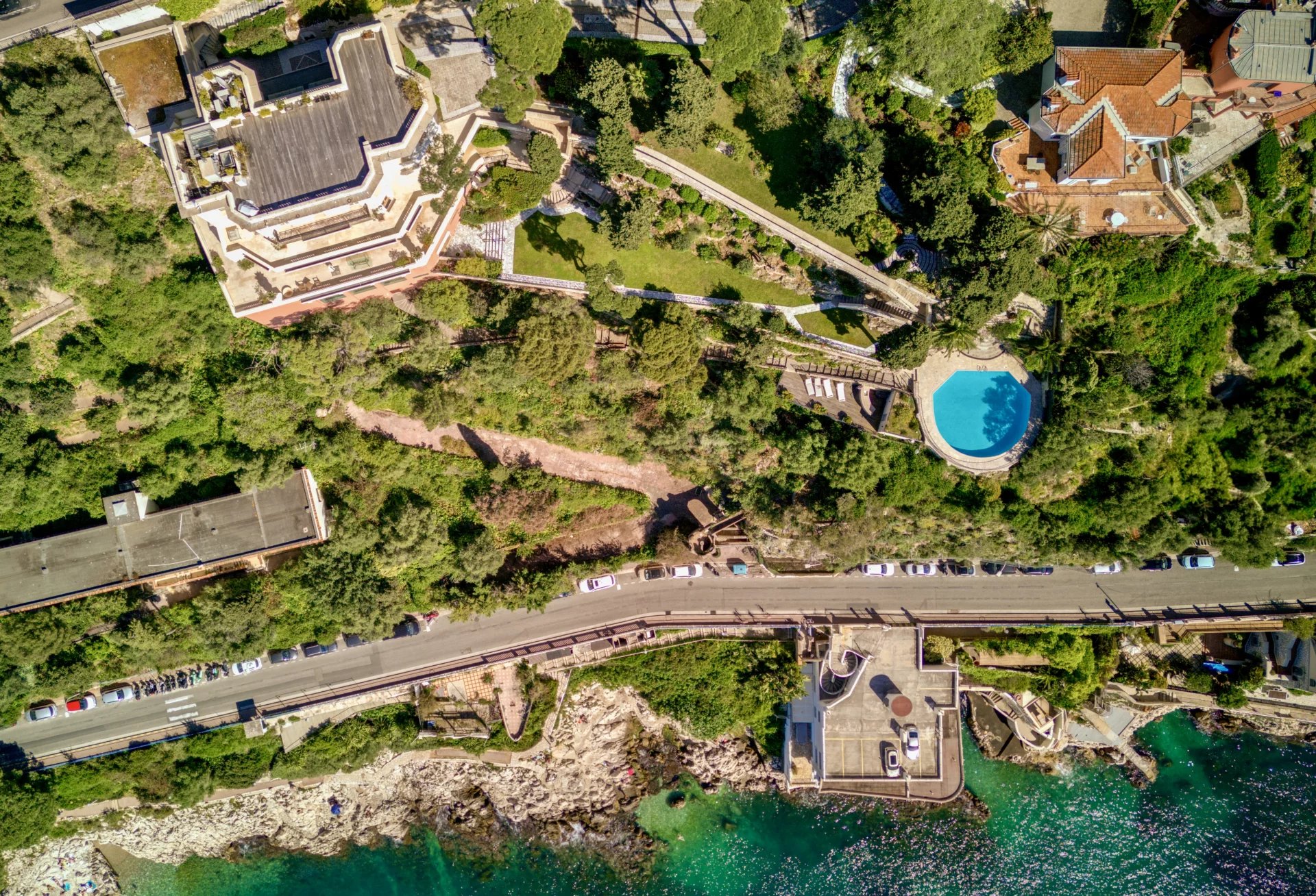The property has belonged to various celebrities in the past including everyone's favourite James Bond, Sean Connery. It would also be possible to purchase a third neighbouring 160sqm villa with 3 bed and bathrooms and a superb circular swimming pool suspended over the waterline. The sea is at the foot of the property, the Port with it's shops and restaurants is within walking distance and Cap Ferrat and Monaco are within easy reach. The airport is just on the other end of the Promenade, in fact you can see the property as you exit the plane. This is a once in a lifetime opportunity !